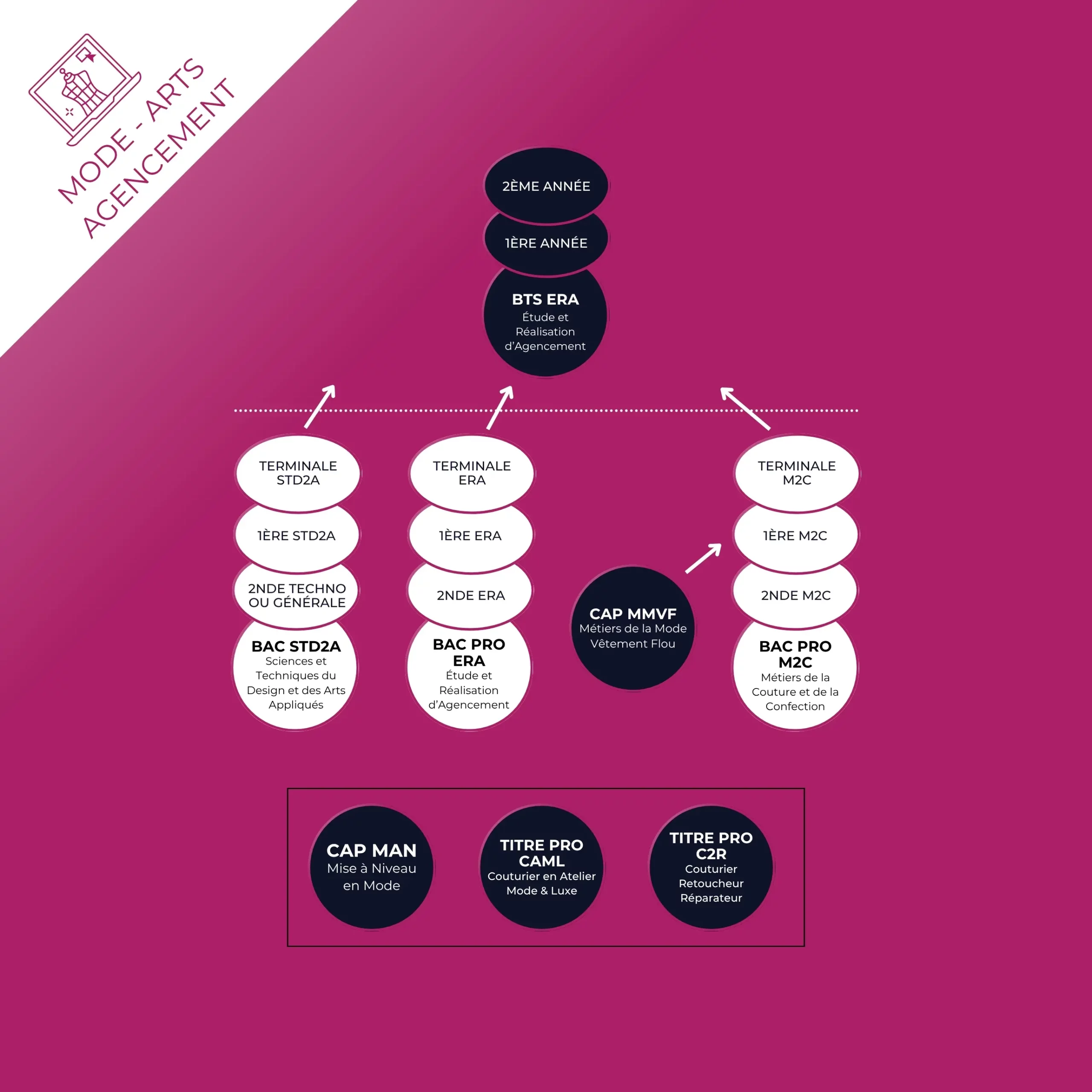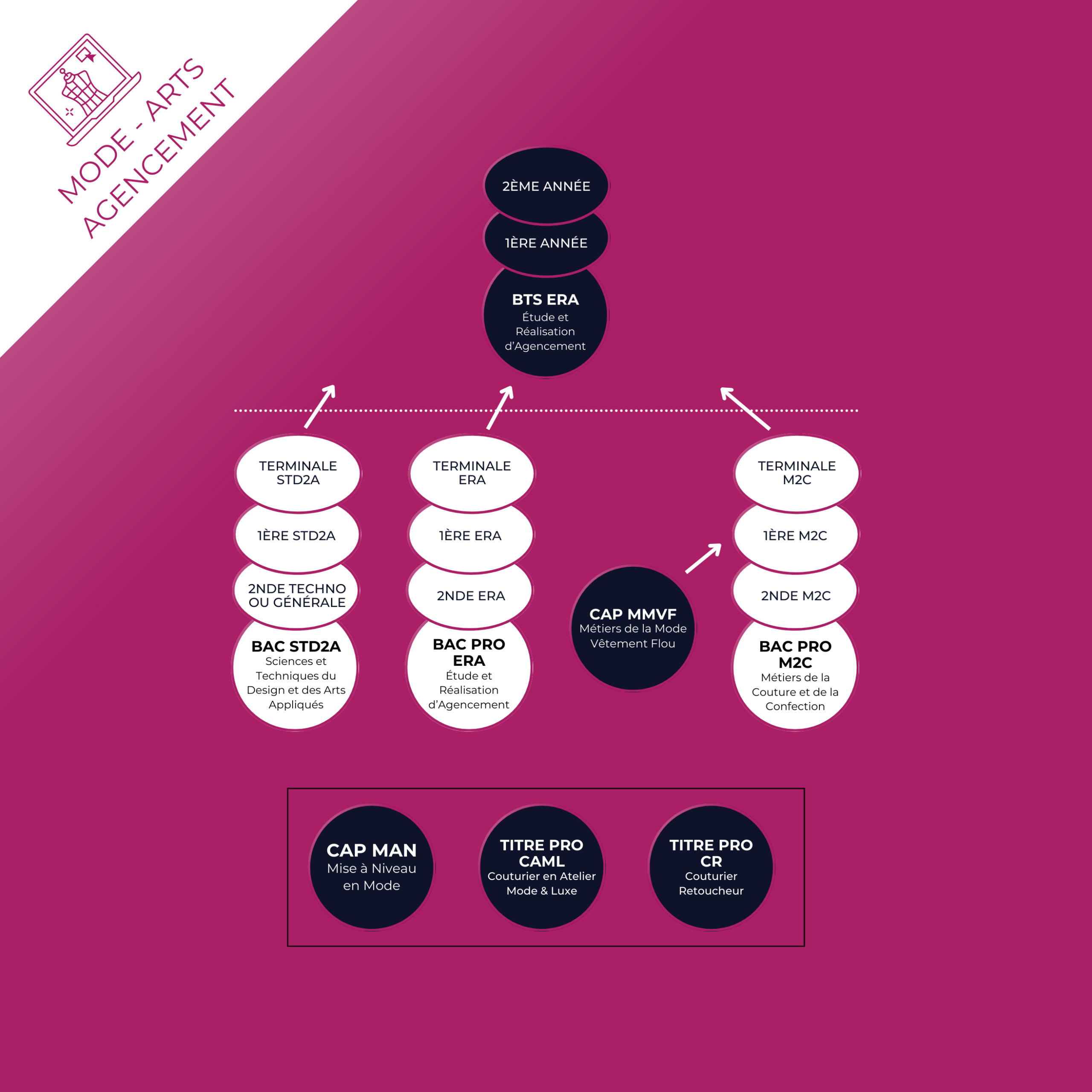 Découvrez plus de détail sur chaque formation au survol des symboles +